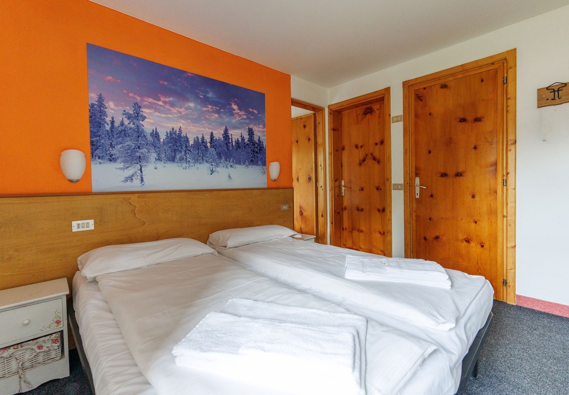 Le nostre camere vanno dritte al sodo. Abbiamo lasciato da parte fronzoli e lusso per puntare su quello che serve davvero: un letto comodo, pulizia e una buona posizione a Livigno. Lo stile è vintage, ma la funzionalità è tutta attuale. Troverai la soluzione adatta se viaggi da solo, in famiglia o con un gruppo di amici, sempre a un prezzo corretto.